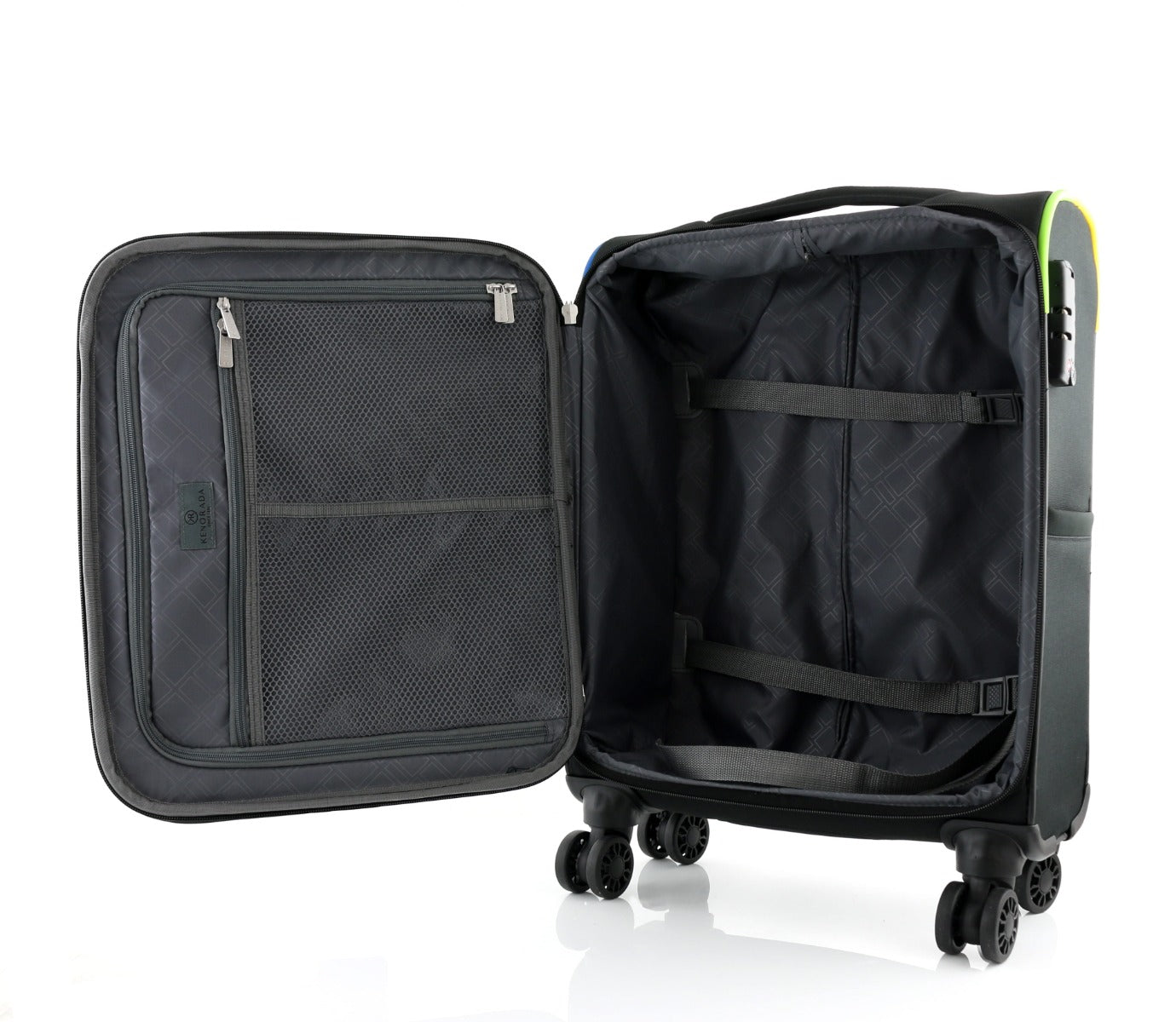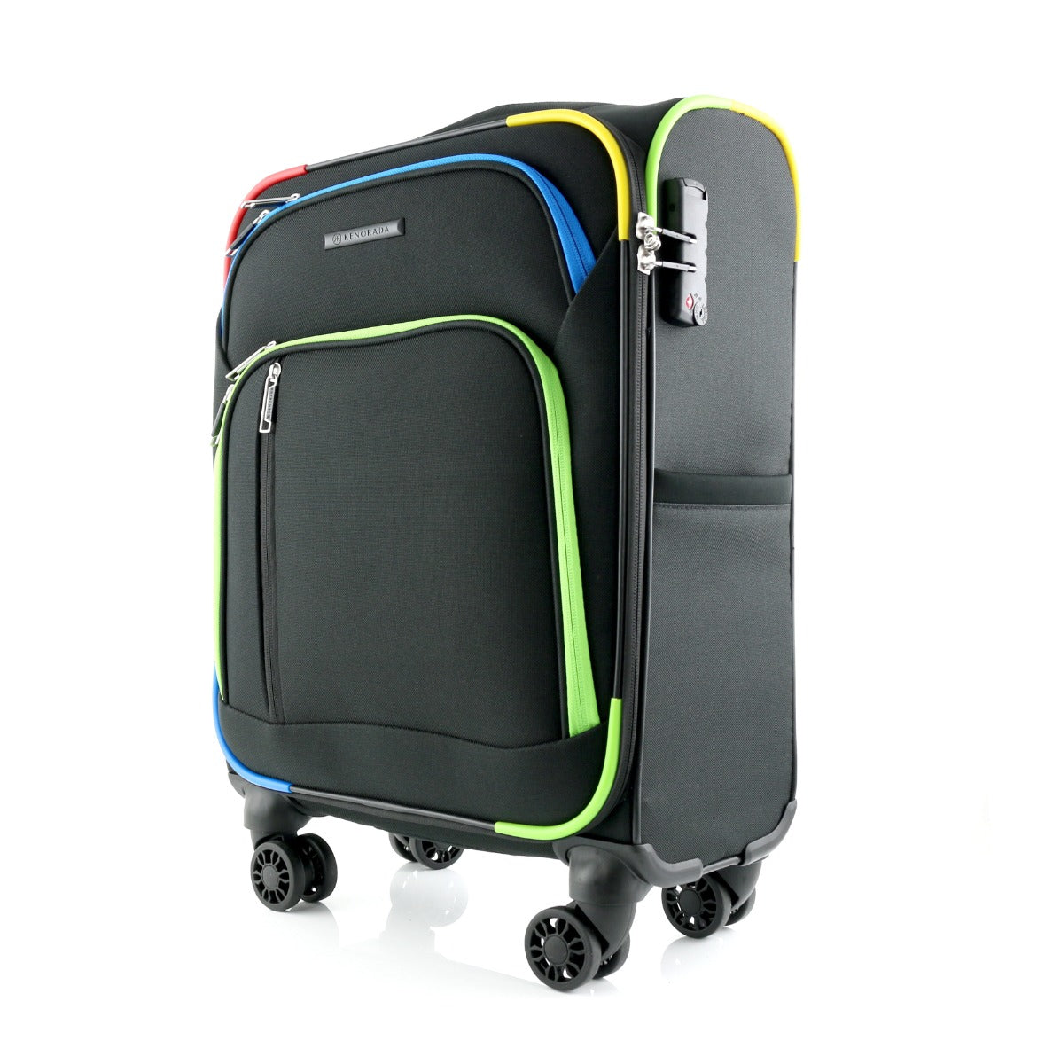Das neue Spinner Weichgepäck von KENO RADA ist ein echter Hingucker. Mit seiner eleganten schwarzen Farbe und den bunten Akzenten zieht es garantiert alle Blicke auf sich. Hergestellt aus hochwertigem, strapazierfähigem Polyester ist es nicht nur leicht, sondern auch besonders langlebig.